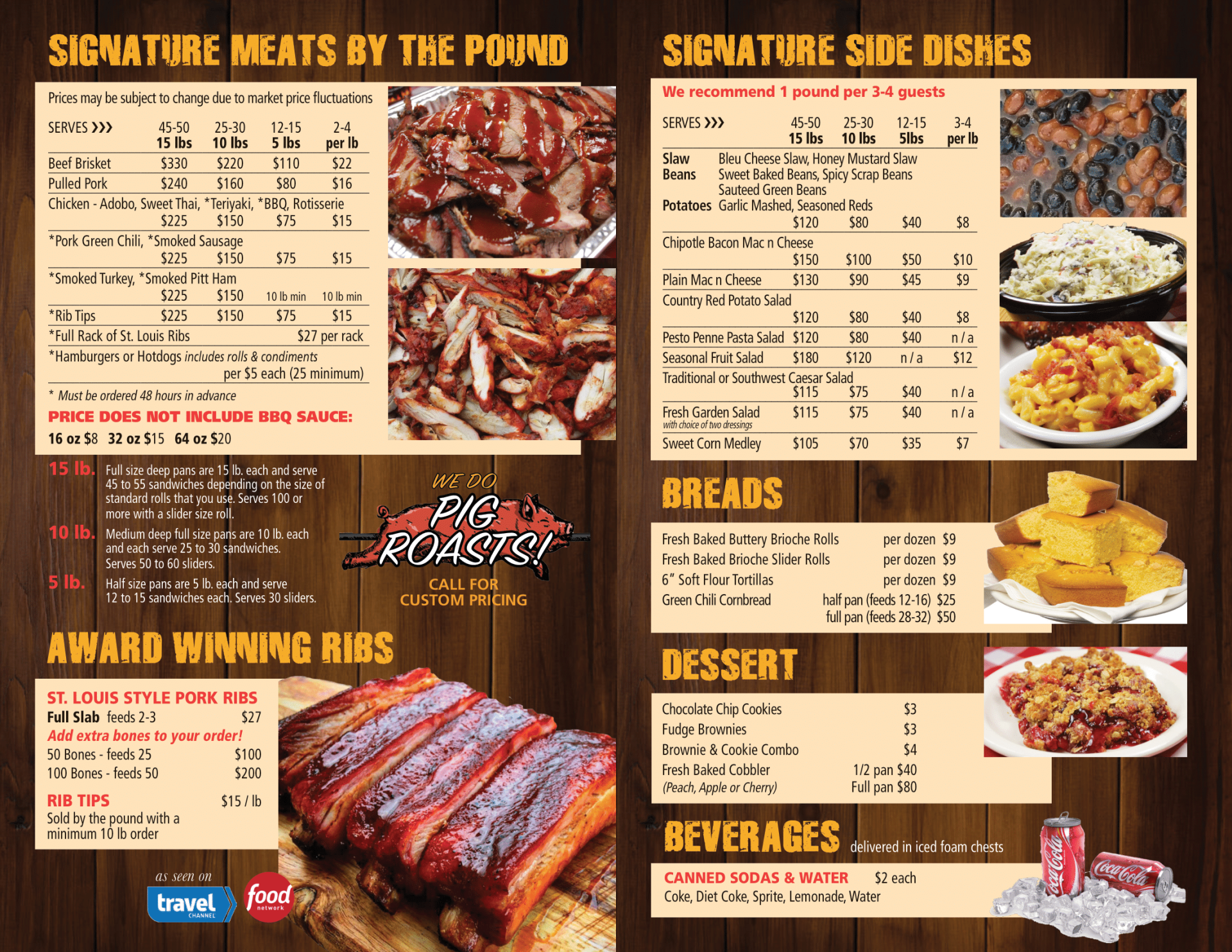 Choice of a 1/2 lb of 3 meats and a 1/2 lb of two original sides with dinner roll or cornbread muffin. Meat choices include: Pulled Pork, Brisket, Sliced Adobo Chicken, Three Ribs, Smoked Turkey, Smoked Sausage, Rib Tips or Wings