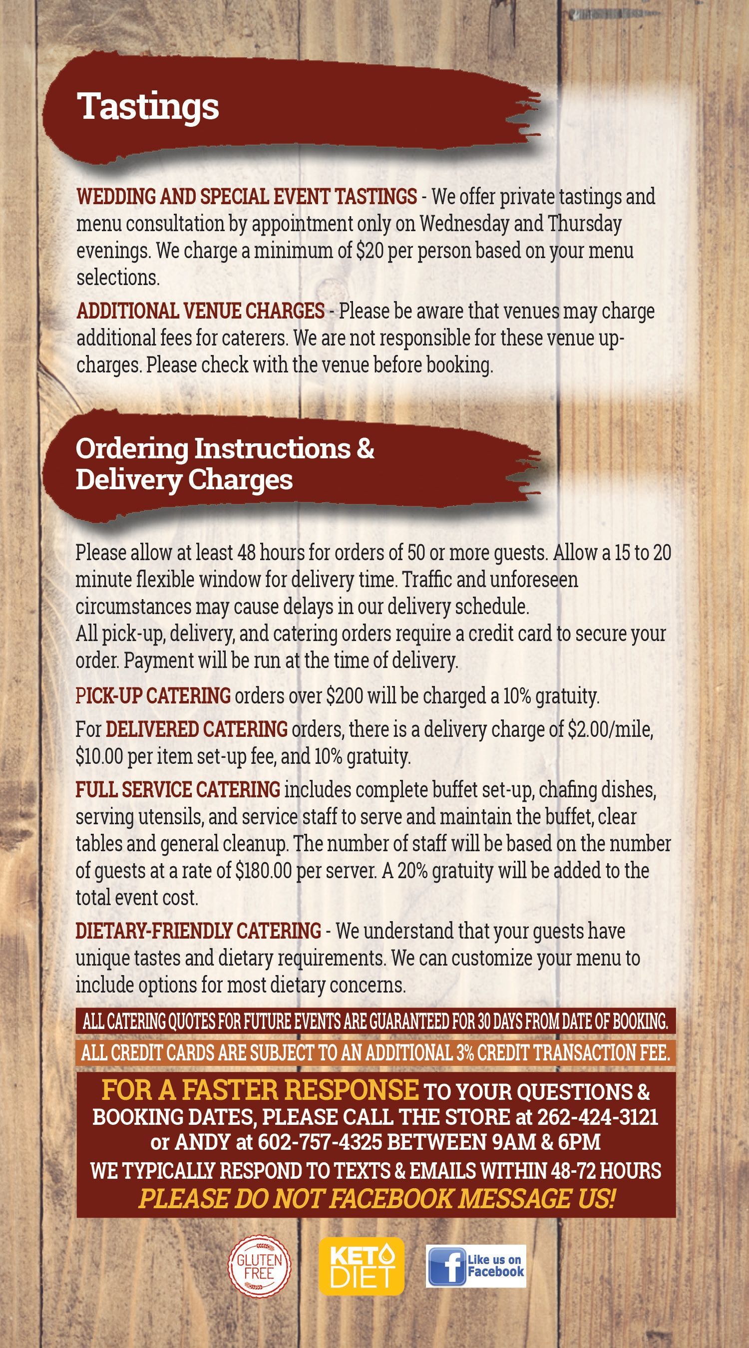 Call us for all of your corporate and private parties, weddings, special events or just family meals!